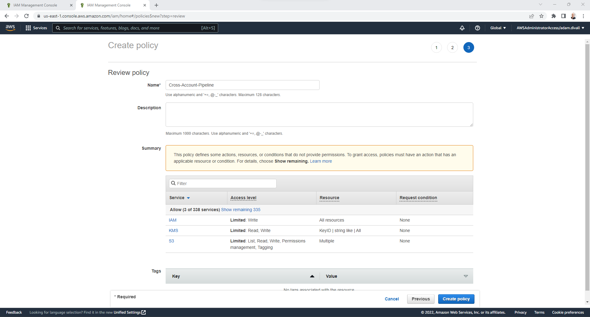 - Enter the below JSON Policy.